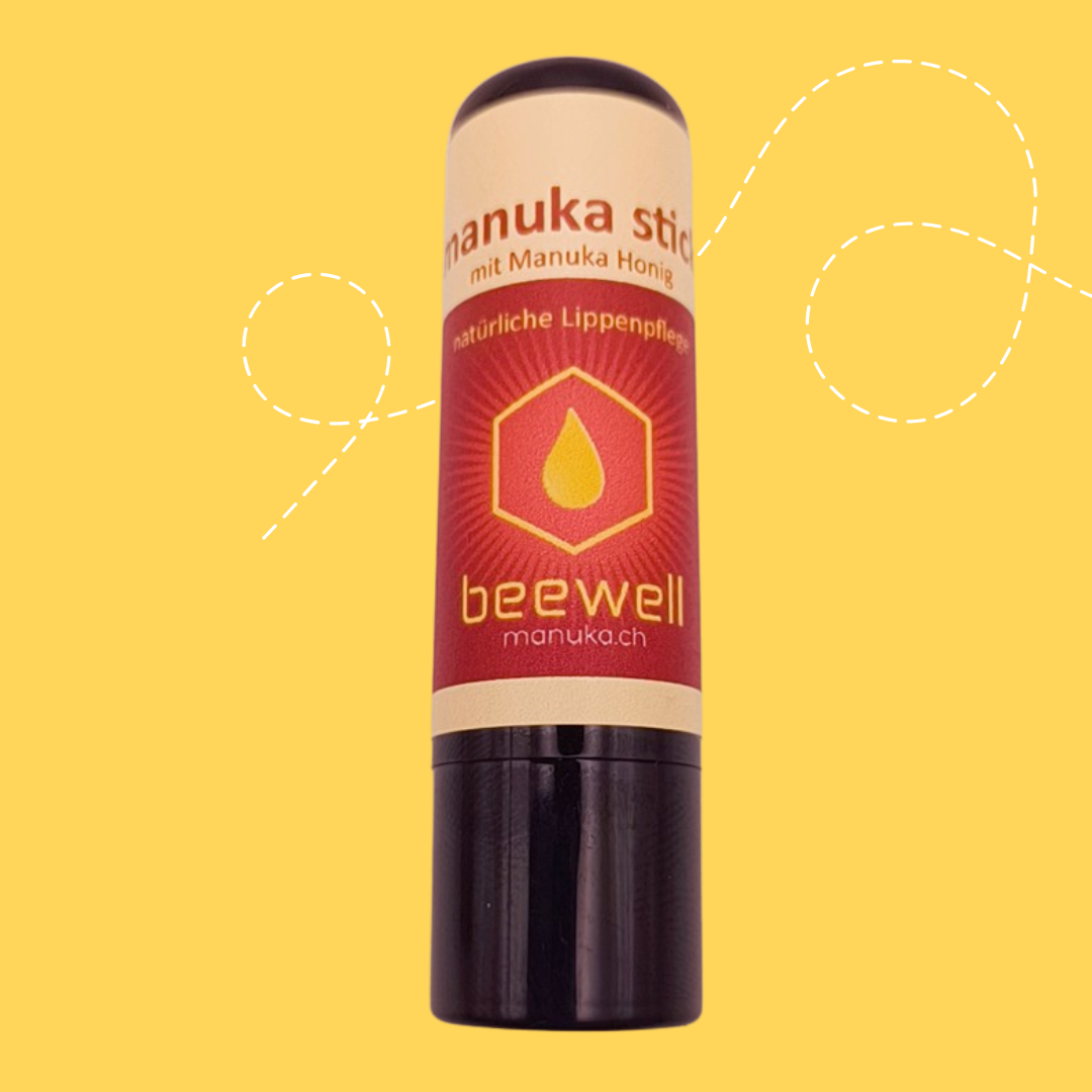 sanft, schützende Lippenpflege mit UMF5+ Manuka Honig aus Neuseeland. Aus der Kombination des Manuka Honigs mit den Zutaten aus der Schweiz ensteht eine besonderes wirksame und nachhaltige Hautpflege. In der praktischen und bekannten Stickform lässt sich der Stick heraustragen und nach Bedarf und sooft als notwendig auf die Lippen auftragen.